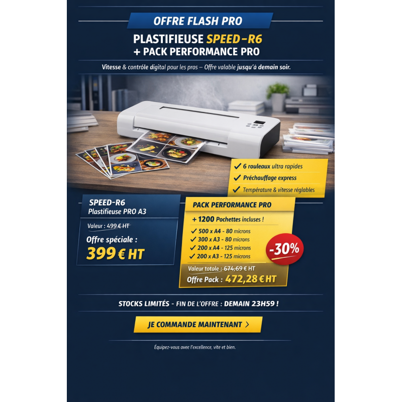 Ce pack complet est articulé autour de la redoutable Plastifieuse A3 PRO Speed R6.